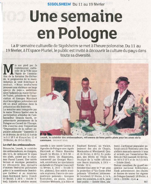 Articles semaine polonaise du 11 au 19 février à SIGOLSHEIM dans DNA