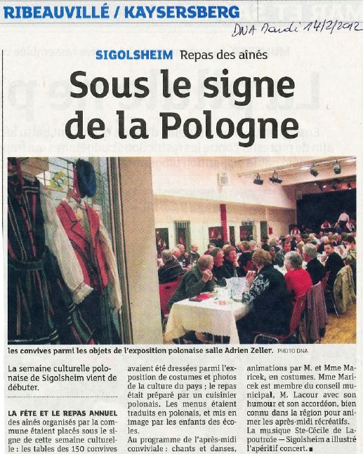 Articles semaine polonaise du 11 au 19 février à SIGOLSHEIM dans DNA