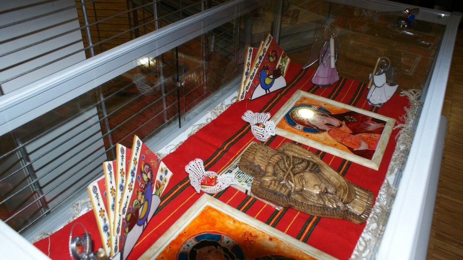 Exposition d'objets polonais dans des vitrines