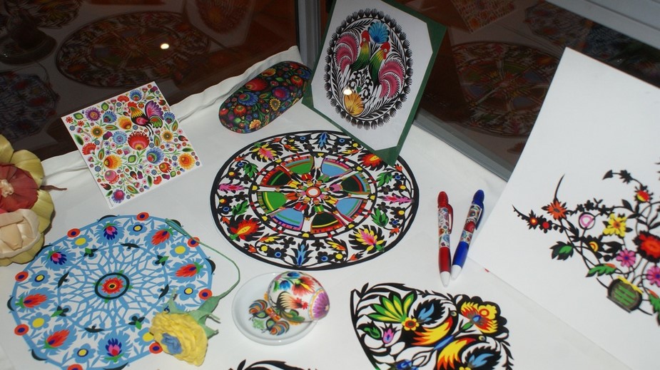 Exposition d'objets polonais dans des vitrines