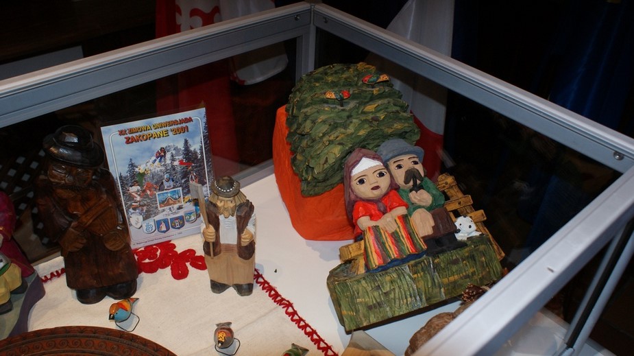 Exposition d'objets polonais dans des vitrines
