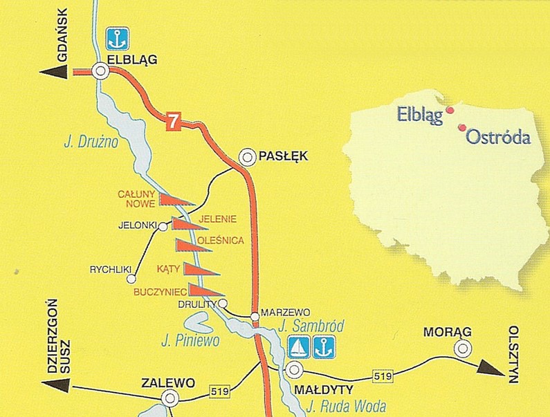 - la traversée du lac Druzno, avec sa réserve naturelle (site protégé),