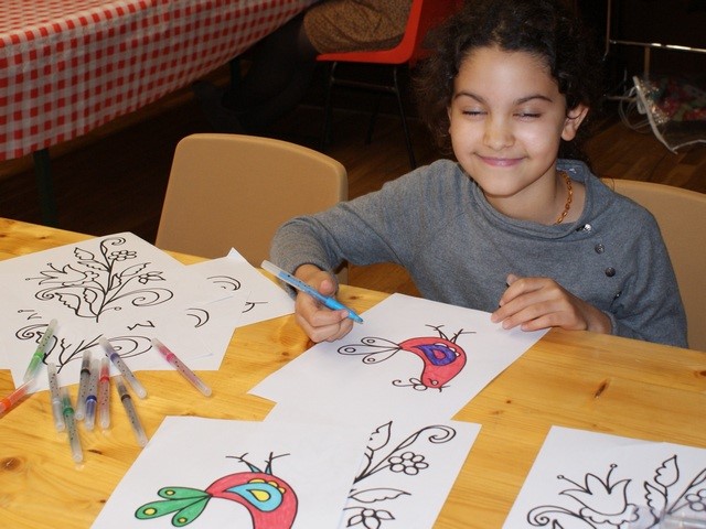 Atelier consistant à faire participer les enfants d'après modèles de différents motifs typiques.