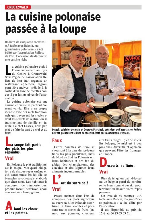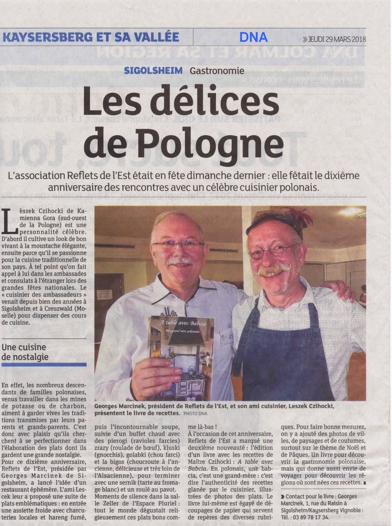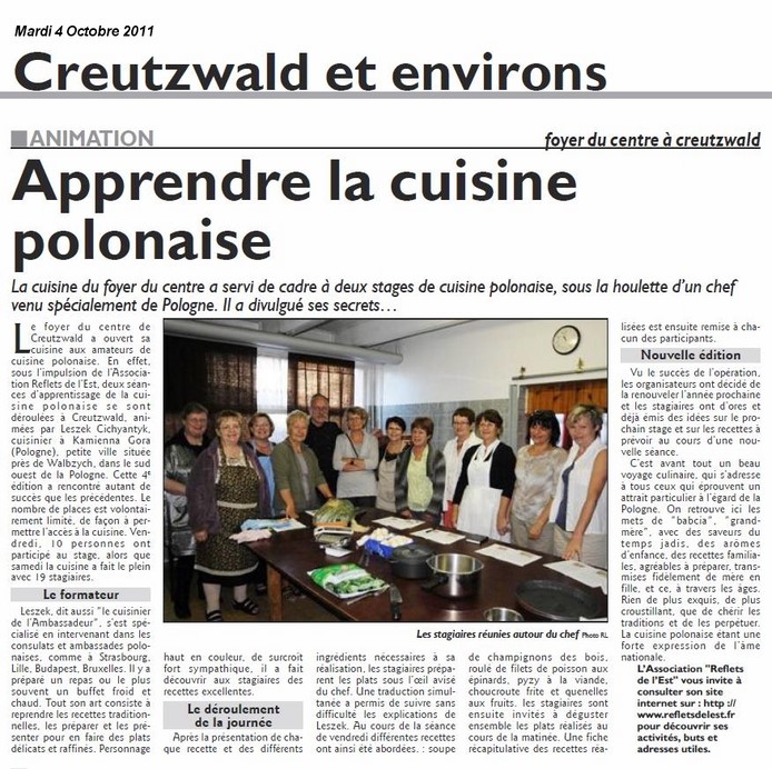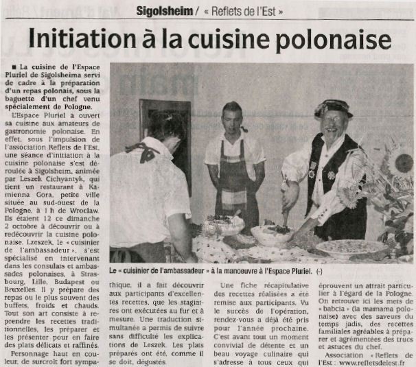 Le stage de cuisine polonaise des 14 et 15 octobre à CREUTZWALD et 16 octobre à SIGOLSHEIM