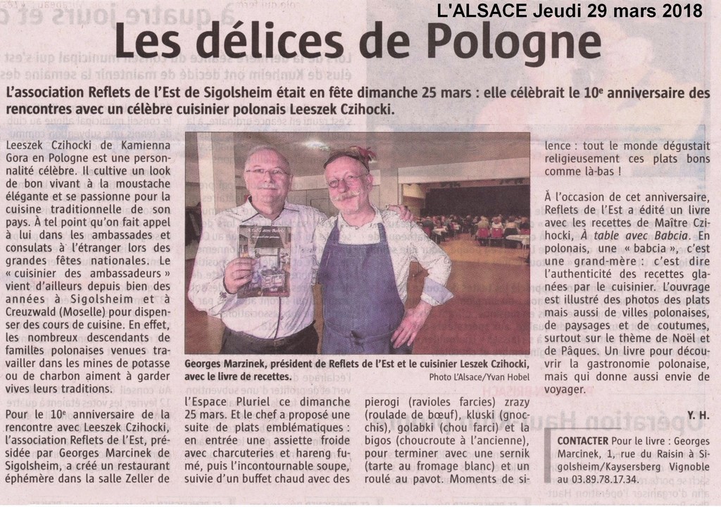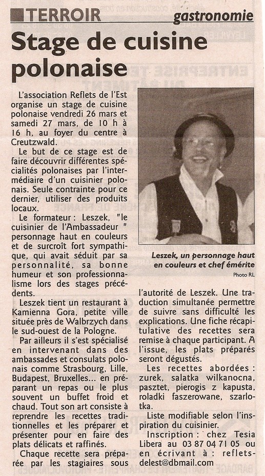 Le stage de Cuisine Polonaise du 24 mars à Creutzwald et des 25 et 26 mars à Sigolsheim